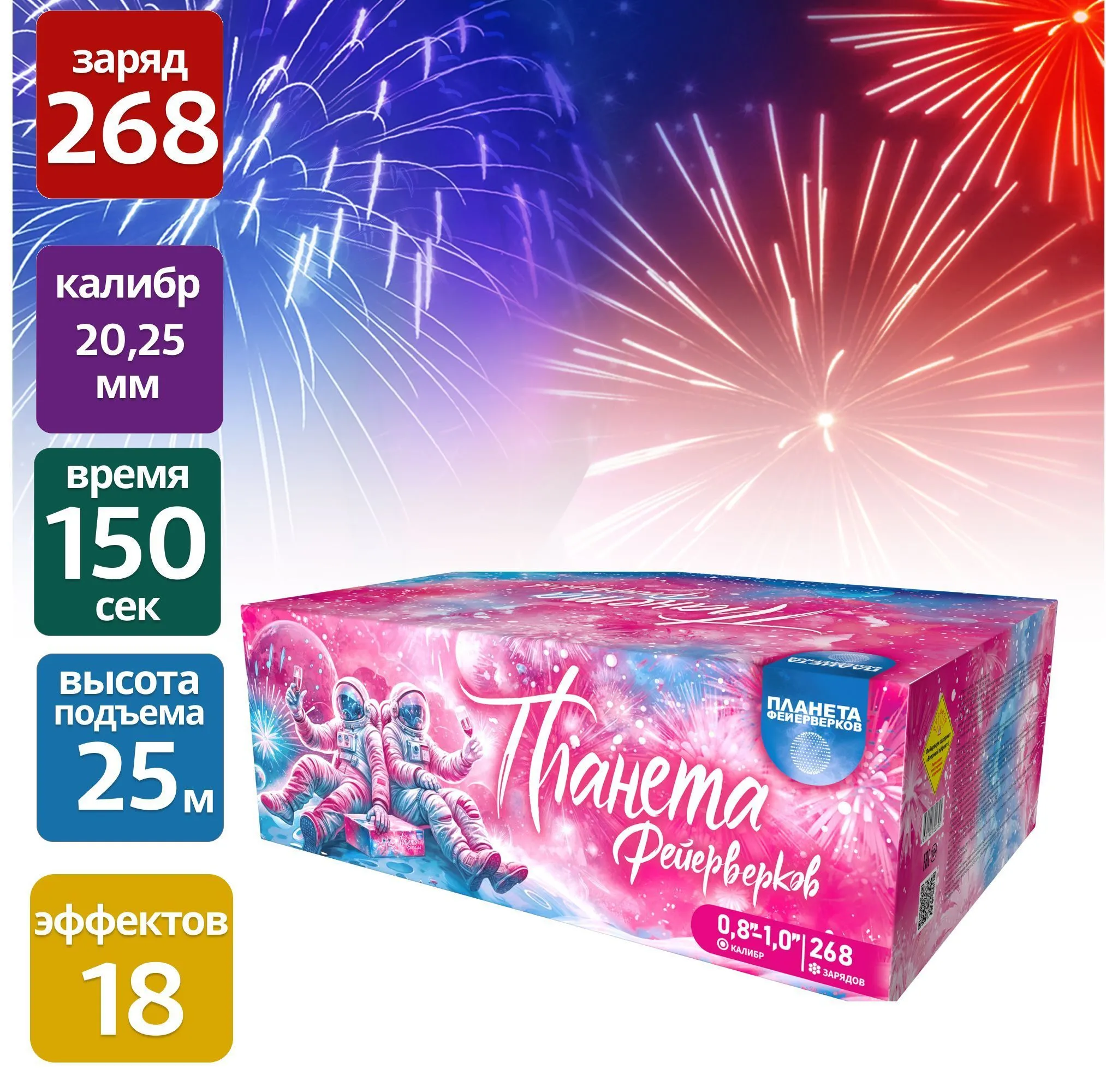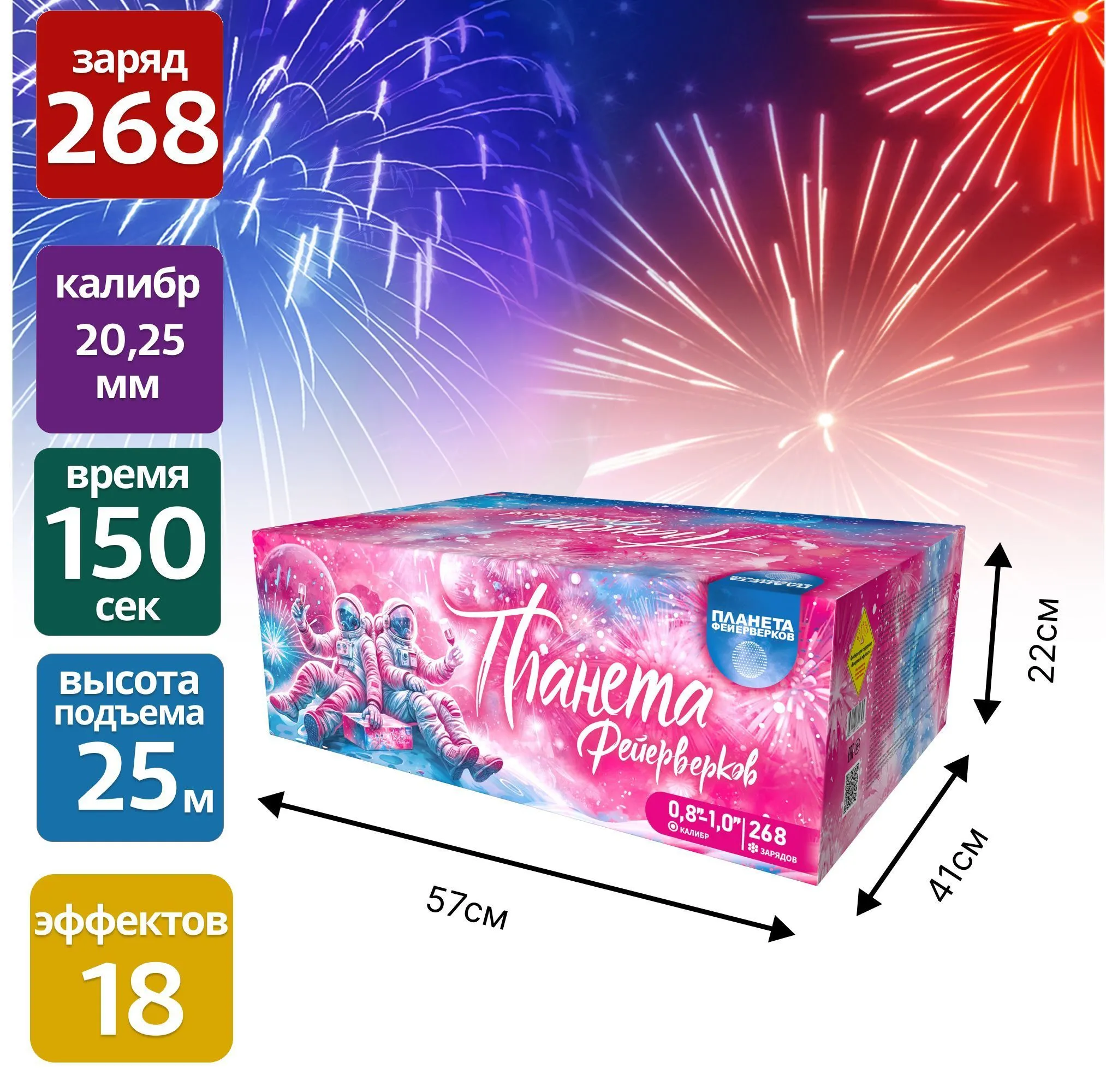 Салют веерный, 268 залпов , калибр 0,8"- 1,0"; высота разрыва до 40м;время работы до 150 сек