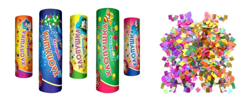 Эффект: хлопок и выброс легкого разноцветного конфетти.